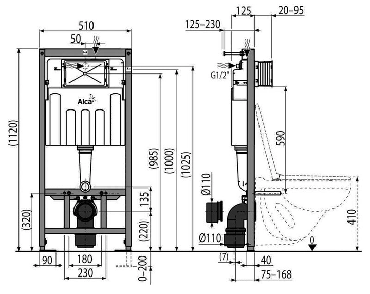 Прихована система інсталяції Alcaplast 1120x150x520 для гіпсокартону (AM101/1120-001)