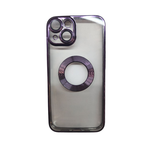 Прозорий чохол з логотипом та отвором, скляний захисний чохол для камери K-and-T для Apple iPhone 15 Purple