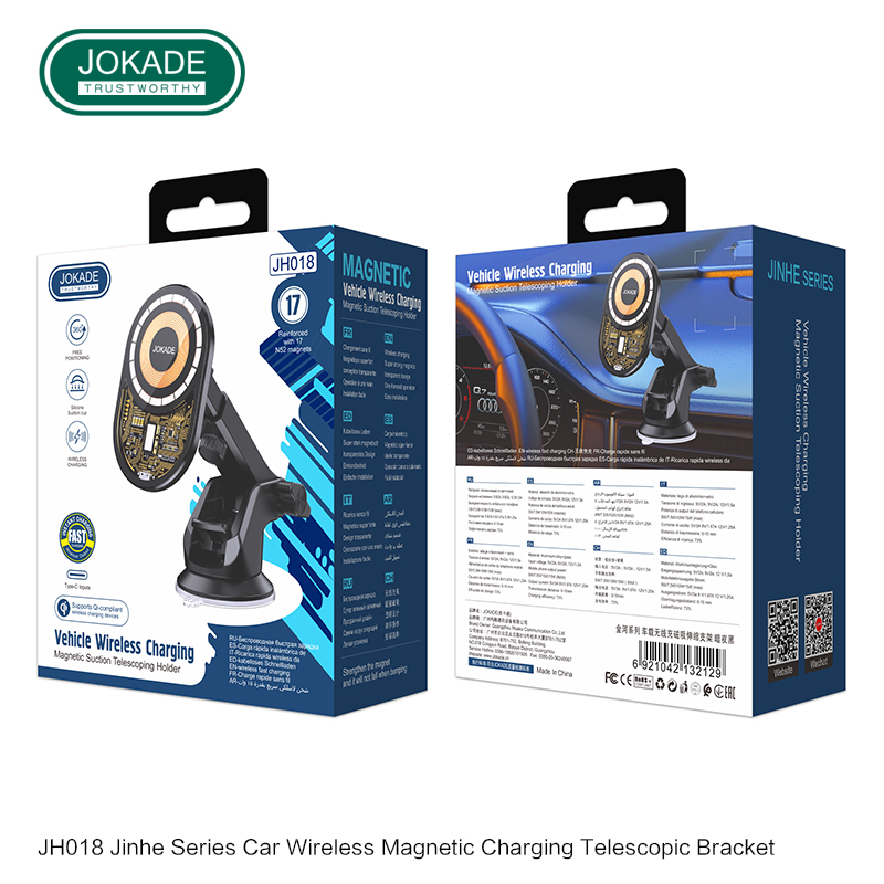 JOKADE JH018 wireless charging Magnetic telescopic car holder Black 15W